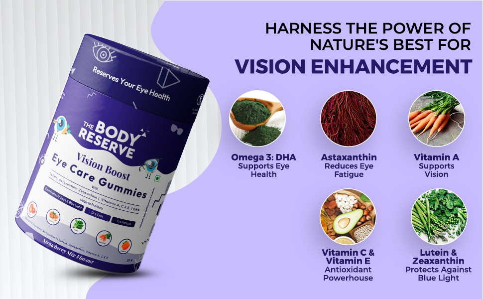 - Powerhouse Of Eye-Nourishing Ingredients: Vision Boost Eye Care Gummies Are The Perfect Blend Of Essential Nutrients To Support And Protect Your Eyes. Each Serving Delivers Omega 3: Dha, Lutein, Astaxanthin, Zeaxanthin, And A Rich Spectrum Of Vitamins A, C & E To Nourish Your Eyes And Promote Overall Eye Health.