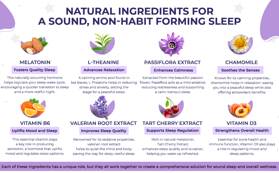 4. RICH IN VITAL VITAMINS & BOTANICALS: Packed with Vitamin D3, Vitamin B6, Tart Cherry, and Tagara Root, our gummies support cognitive function, concentration, vitality, and immune function. They're perfect for managing sleep cycle and jet lag relief.