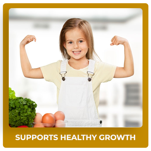 - Product Benefits: Supports Immune Function, Promotes Healthy Growth, Boosts Energy Level, Supports Brain Health, Supports Bone and Eye Health, Kids Immunity Support