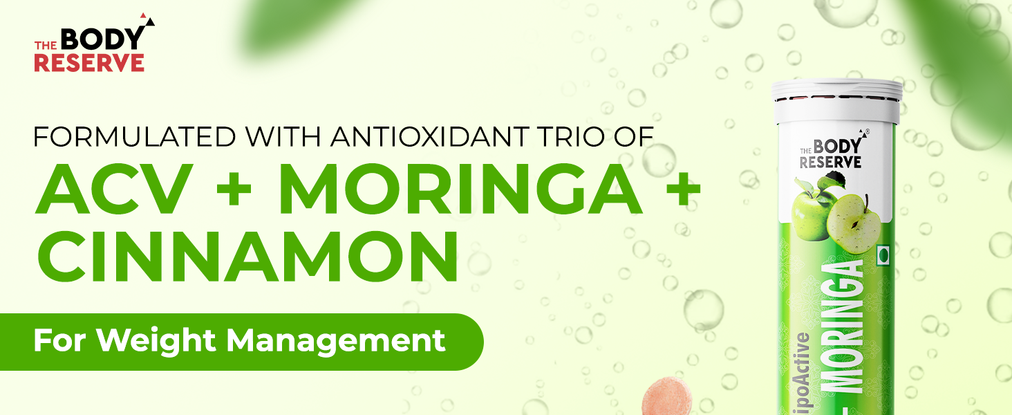 The Body Reserve ACV Moringa with Apple Cider Vinegar, cinnamon, for Control Carvings Supports Metabolism, Boosts Energy & Immunity Green Apple Flavor Pack of 6 (90 Tablets)