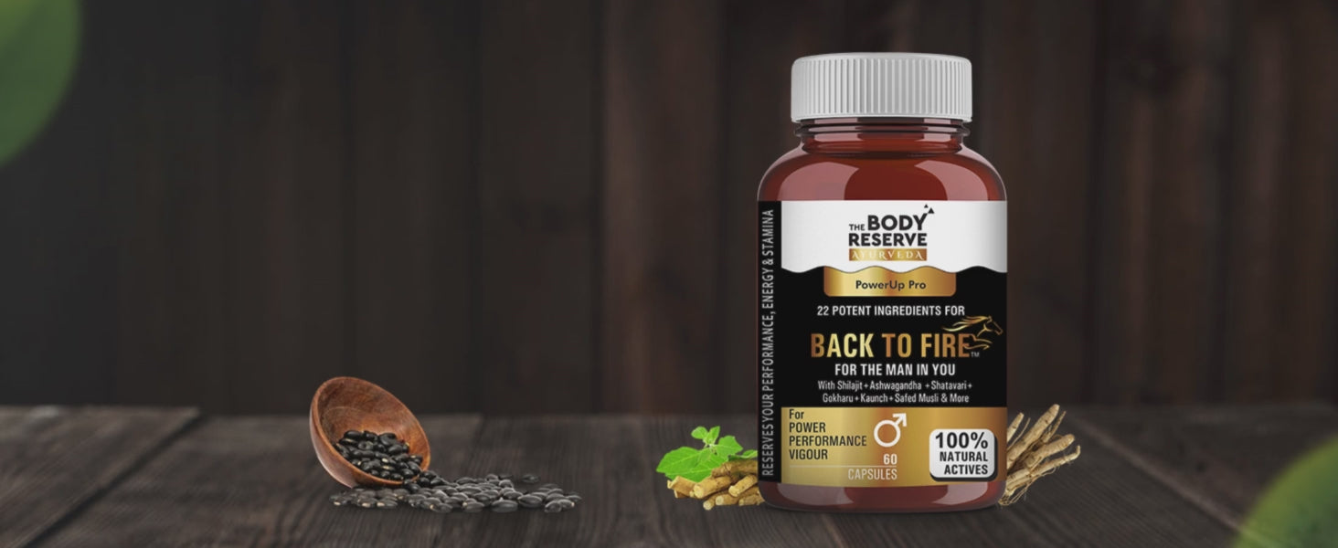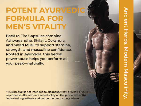 The Body Reserve Ayurveda Back To Fire Capsules For Men With 22 Ayurvedic Herbs Blend for Stamina, Strength & Vitality With Ashwagandha, Shilajit, Safed Musli, Gokshura & More 60 Vegetarian Capsules