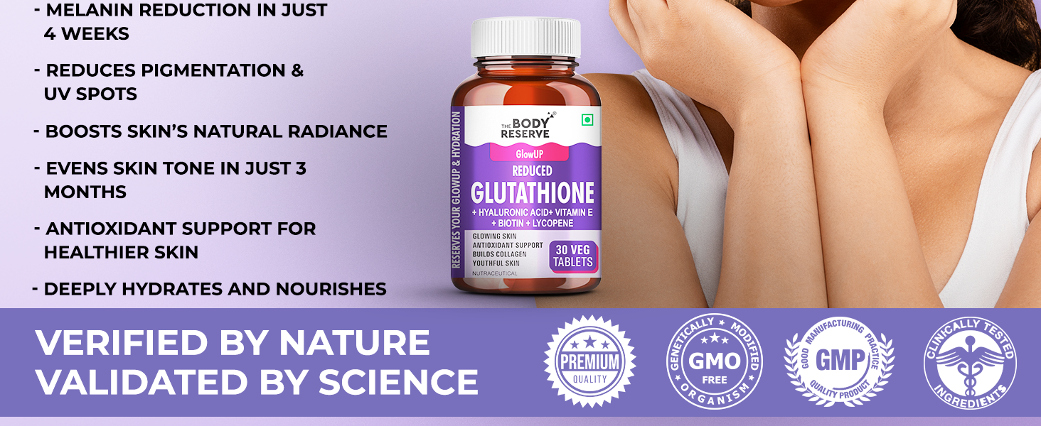 Nourish your skin from within with THE BODY RESERVE Glutathione Tablets, a premium antioxidant formula featuring Japanese L-Glutathione (Reduced) to support skin clarity, hydration, and collagen production.