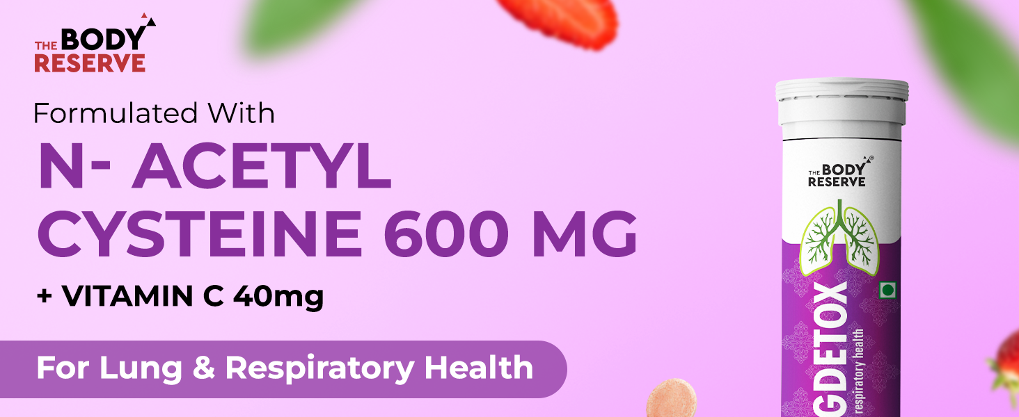 The Body Reserve Lung Detox 40 Effervescent Tablets With N-Acetylcysteine 600mg and Vitamin C | Cleaner Lungs Detoxification and Immune Defence Strawberry Flavour, Pack of 2