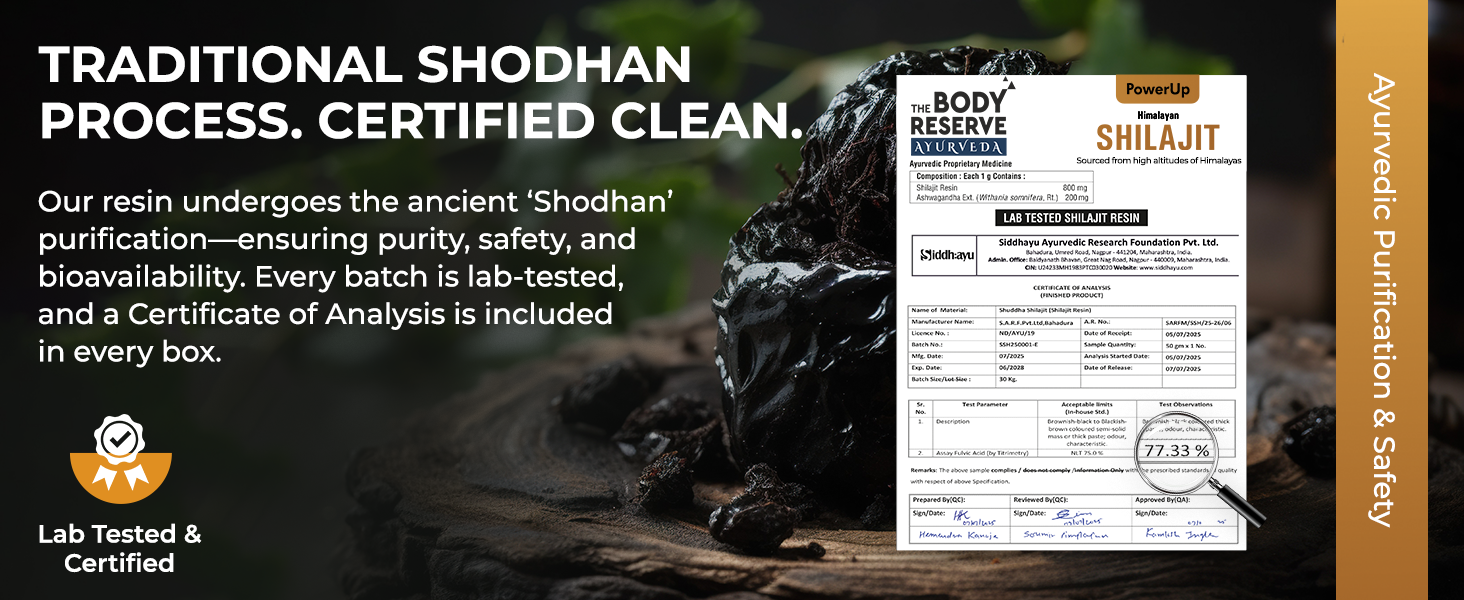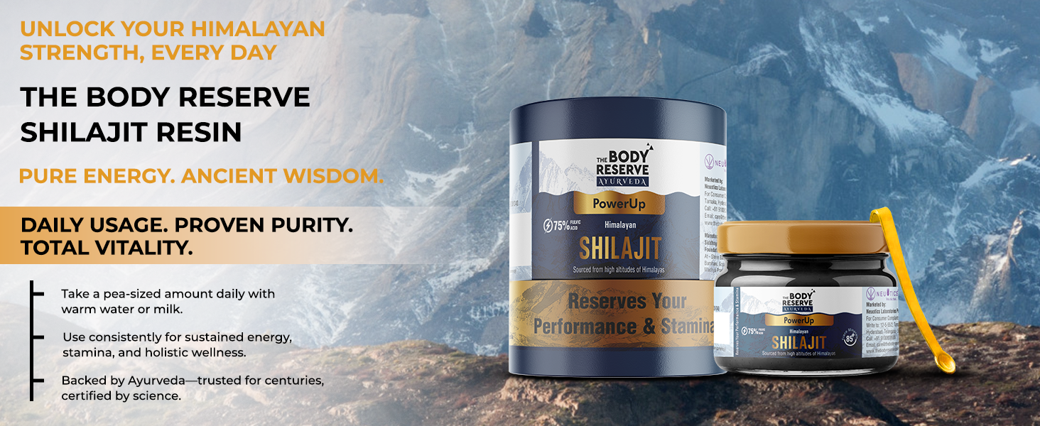 - Experience the ancient wisdom of Ayurveda, amplified by modern science, with The Body Reserve Shilajit Resin—your trusted daily partner for strength, vitality, and total well-being. For best results, use consistently as part of your daily wellness routine. Not intended to diagnose, treat, cure, or prevent any disease