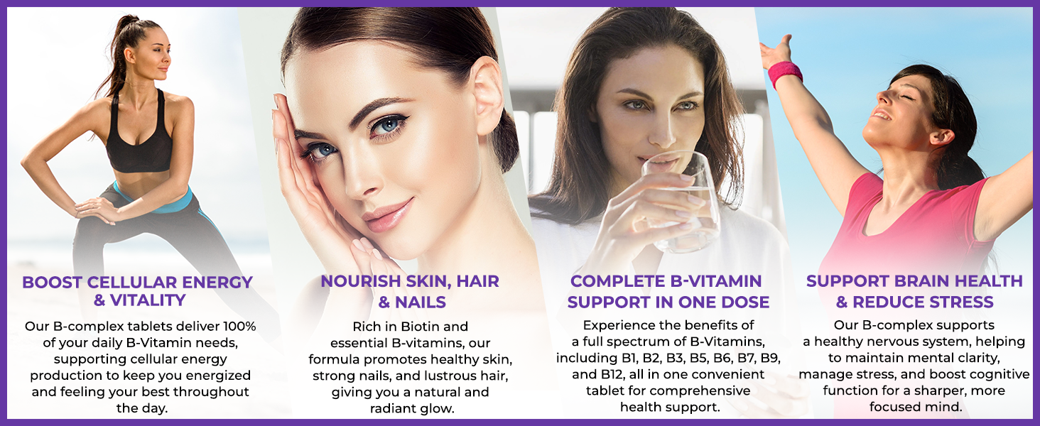 COMPLETE VITAMIN B-COMPLEX: Each tablet is packed with a potent blend of B vitamins, ensuring you get full support for various bodily functions. With 100% of your RDA included, you can be confident you're meeting your daily nutritional needs.